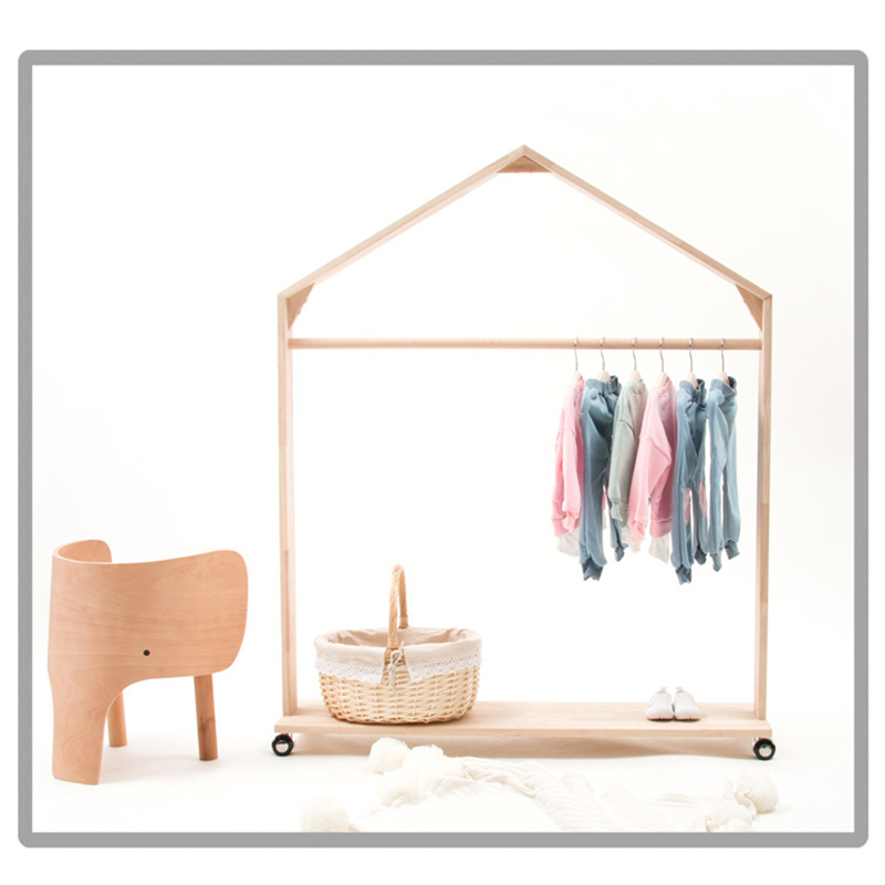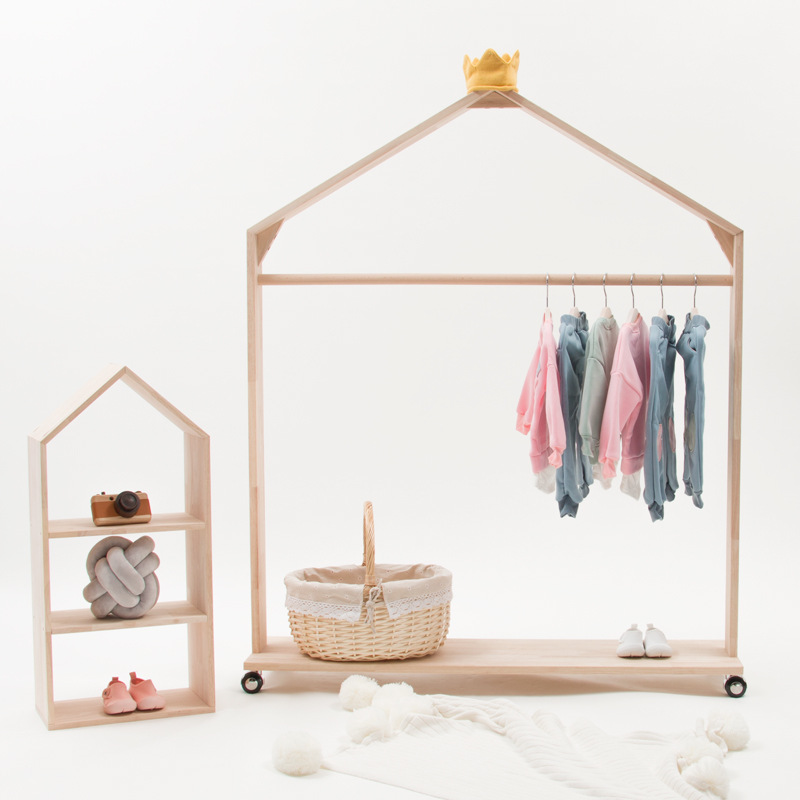 Baby Wooden Clothes Organizer Hanging Rack Children Kids Room Furniture Dress Up Cheap Wardrobe