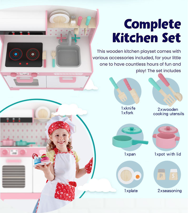Kitchen Toys Role Play Set Girls Kids Wooden Kids Kitchen Table Furniture Set Toy Child Girl Food Montessori Material